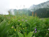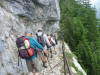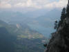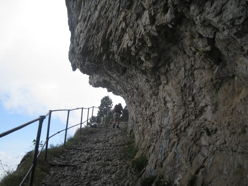 La partie taillée dans la falaise permet un point de vue sur le lac d'Annecy. Sur le plateau boisé et les alpages suivants les vaches reines inoffensives sont majoritaires . Une pause café au chalet de la Combe avant d'entreprendre l'ascension de la pointe de Banc Plat.