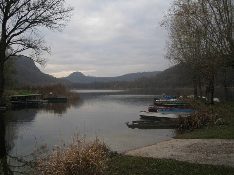Un coup d’œil au plan d’eau du lit au roi avant de déjeuner dans le petit parc de Cressin et reprendre la route de Parissieu avec vue sur les marais de Lavours et le Grand Colombier.