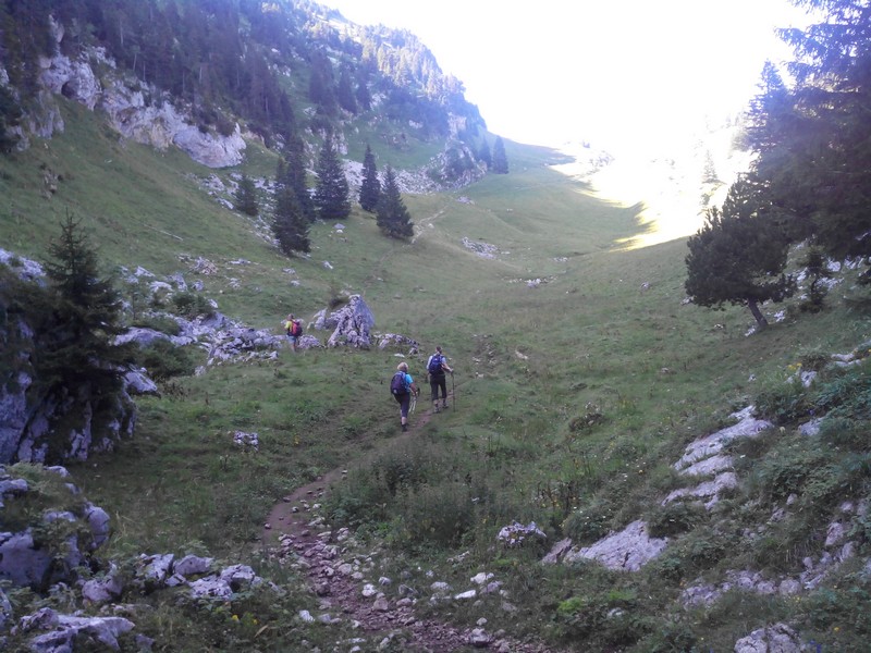 Longue montée tranquille, entre les pentes du Trélod et celles de l’Arcalod
