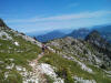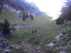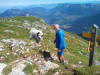 Départ du parking du château pour les sous bois de la forêt des Eparres. Nous passons près de l’oratoire de Nerfond, longeons la Dent de l’Ours, à notre gauche, où aujourd’hui marmottes et chamois sont absents. Une pose au col de Bovinant (1646m) atteint en 1h 35mn avant de gravir sur notre gauche jusqu’à un petit passage qui nous offre une vue panoramique sur le Granier, les Lances de Malissard, la Dent de Crolles ainsi que les massifs de Belledonne et du Mont Blanc. Suivons l’arête jusqu’à la Croix rouge dominant le monastère de la Grande Chartreuse, où un troupeau de moutons est maître de ces lieux. Que de crottes sur ce sentier !!!