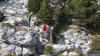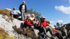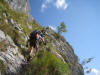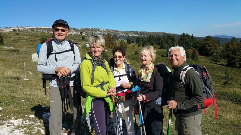 Départ à la Balme de Thuy (620m). Un raide sentier, une traversée exposée munie de chaînes, un passage en forêt –où Bébert cueille un superbe bolet-nous conduisent au col de la Bourse (1450m) puis dans la gorge d’Ablon en face de la Tête à Turpin. Nous descendons dans ce vallon labouré par les truffes des sangliers jusqu’au panneau Freu d’Ablon. Et là, nous virons à gauche pour accéder au plateau du Pertuis par un sentier caillouteux très, très pentu. Nous découvrons les premiers lapiaz …une halte propice au casse-croûte. Pas de sieste aujourd’hui malgré les 20 degrés… le chemin de retour est encore long. Après la traversée du plateau par la croix du Bénitier, direction col du Pertuis (1679m). Sur la droite, l’immense plateau karstique du Parmelan nous surprend .Un dernier coup d’œil avant d’aborder la très longue descente vers la place de Dingy Saint Clair.
