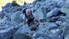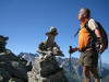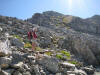 Un départ de Saintin à 6h 30…..ce qui nous permet de gravir tout droit l’arête nord-ouest des Grands Moulins à l’ombre ;les mains s’avèrent indispensables pour escalader les blocs et bandes herbeuses , les yeux cherchant le sentier jalonné de cairns pour atteindre le sommet culminant à 2495m. Arrivée à 11h avec une température de 22°.