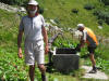 Pour le retour, nous empruntons le sentier tombant avec raideur jusque sous le col de la Frèche, pour retrouver plus loin le chalet de la Perrière où un bon bain de pieds dans un bassin nous ravigote.