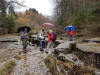 Nous débutons par une montée dans "le bois des bêtes" pour arriver dans un site sauvage dont la première curiosité géologique de la rivière Séran est une succession de marmites qui relient de profondes et étroites entailles : ce sont les gorges de Turignin. Une dalle de pierres enjambe une cuve profonde et permet de suivre le sentier qui rejoint Vieu. Nous montons dans ce village, puis descente en direction du signe de l’Adoue à Chongnes : un site reposant avec une petite chapelle, une source, une sculpture de la Vierge à l’enfant et un four à pain, lieu choisi pour pique niquer. Nous repartons à Vaux-Morets pour découvrir la source du Groin et une petite boutique de vente de miel et dérivés, à Pont pour le gouffre du diable et à Cerveyrieu pour la cascade haute de 60 m d'où se précipitent les eaux tumultueuses du Séran au dessus du village d'Artemare.