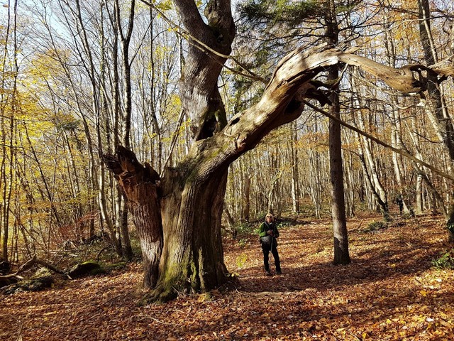 Randonnée dans les sous-bois, à proximité des falaises du Gros Foug, à la découverte d'un châtaignier de 1,7m de diamètre.