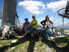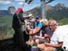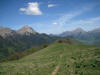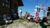 Pour le 1er groupe, départ à Routhennes hameau de Sainte Reine ( 910 m). Quant au 2e groupe, nous sommes six à débuter la balade au parking ‘Les Ginets » (alt.1020m) à deux pas de la station de ski des Aillons. Un regard sur le Colombier et les rochers de la Bade et c’est parti pour une montée soutenue dans les prés. Après un passage (facultatif…) en forêt, sur un terrain plus adapté à l’agilité des chevreuils qu’à celle des randonneurs, nous gagnons le joli sentier qui mène tout droit au Mont Pelat. Eblouis par la blancheur de la chaîne de Belledonne et admiratifs devant l’altière forteresse de l’Arclusaz, nous poursuivons vers nos amis en vue sur le Mont Morbié (1542m). Une dernière grimpette sous le chaud soleil et nous voilà tous (17) à l’arrivée du télésiège des Aillons. Tournée générale de Clinton, piquenique sympa avec dégustation de pâtisseries maison, petite sieste à l’ombre ou au soleil et chaque groupe reprend son itinéraire en boucle (pour nous la longue piste bleue passant par le col de la Sciaz).