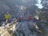 Démarrage vers 8h35 sur un sentier forestier très ombragé . Les panneaux d'indication et le marquage n'étaient pas toujours visibles.... nous avons tout d'abord fait fausse route au pied du massif puis nous avons rebroussé chemin pour retrouver la bonne voie en direction du col vers 10h30 !. Vers midi la chaleur commençait à nous harceler... Josy nous a servi un petit pastis bien frais très sympathique et au déjeuner un Bandol Jean Pierre nous a parfaitement requinqué! Repartis pour le col à 13h30 nous y sommes arrivés vers 15h00. Albert n'en avait pas assez..... il s'st promené jusqu'au dôme de Bellefont.