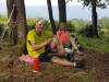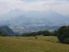 Trois participants (e)s au dessus de St Alban Leysse sur la boucle Montbasin, Razerel, Monterminod.