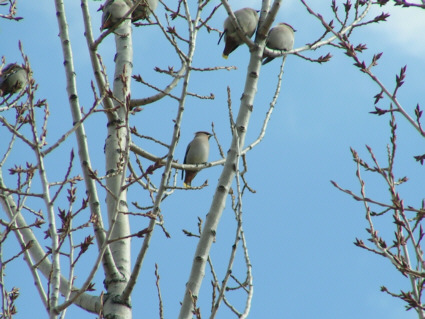 Merci à Pierre M. qui a eu le réflexe de photographier début mars cette invasion de jaseurs boréaux tout près de chez lui.