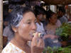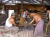 Mandalay : la pagode Payagyi renferme la plus vénérée des statues: Mahamuni, devenue difforme par l'épaisseur des feuilles d'or déposées journellement au fil des siècles, puis visite des ateliers d'artisanat fabriquant des tapisseries rembourrées et brodées de fils d'argent, d'or ,de paillettes, puis la fabrique des feuilles de papier de bambou, des feuilles d'or servant aux offrandes dans les pagodes.
