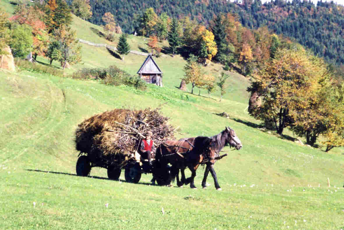 A Casa de Piatra, village sans électricité,transport de nos bagages dans un tombereau tiré par un cheval. Le soir, ses habitants déploient leurs talents. A Sibiu, rencontre avec un berger. Dans les Monts Trascau, un charbonnier raconte sa vie de dur labeur. A Mamaligani, un couple nous accueille pour la nuit.